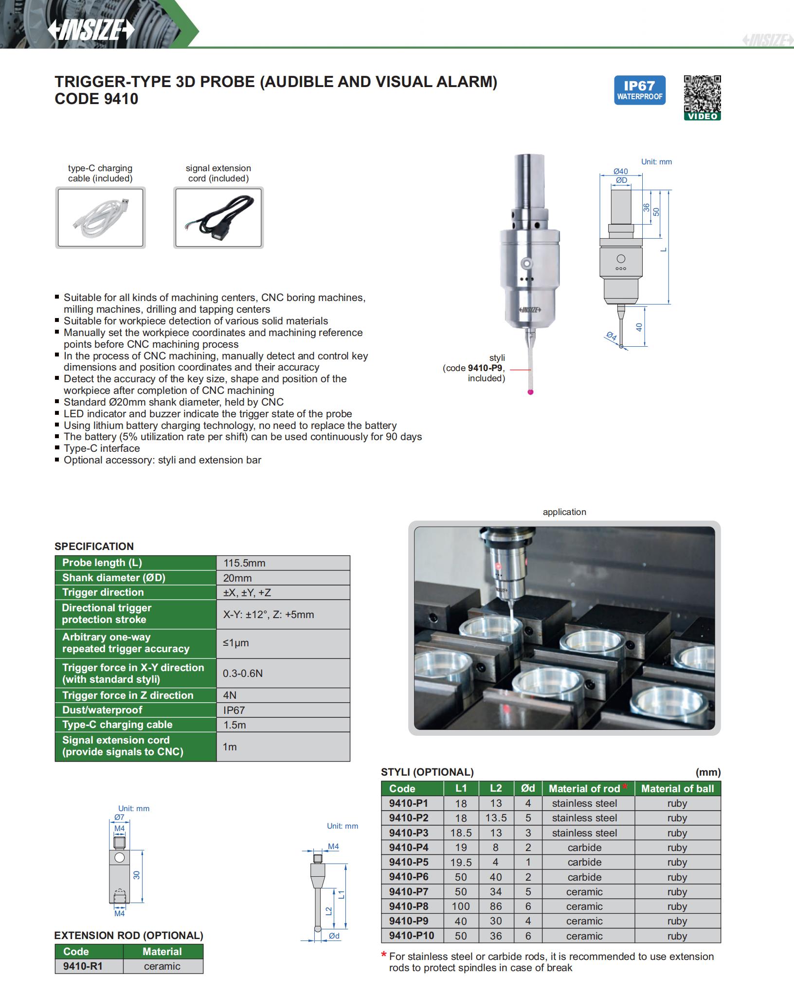 Trigger-Type 3D Probe (Audible And Visual Alarm)