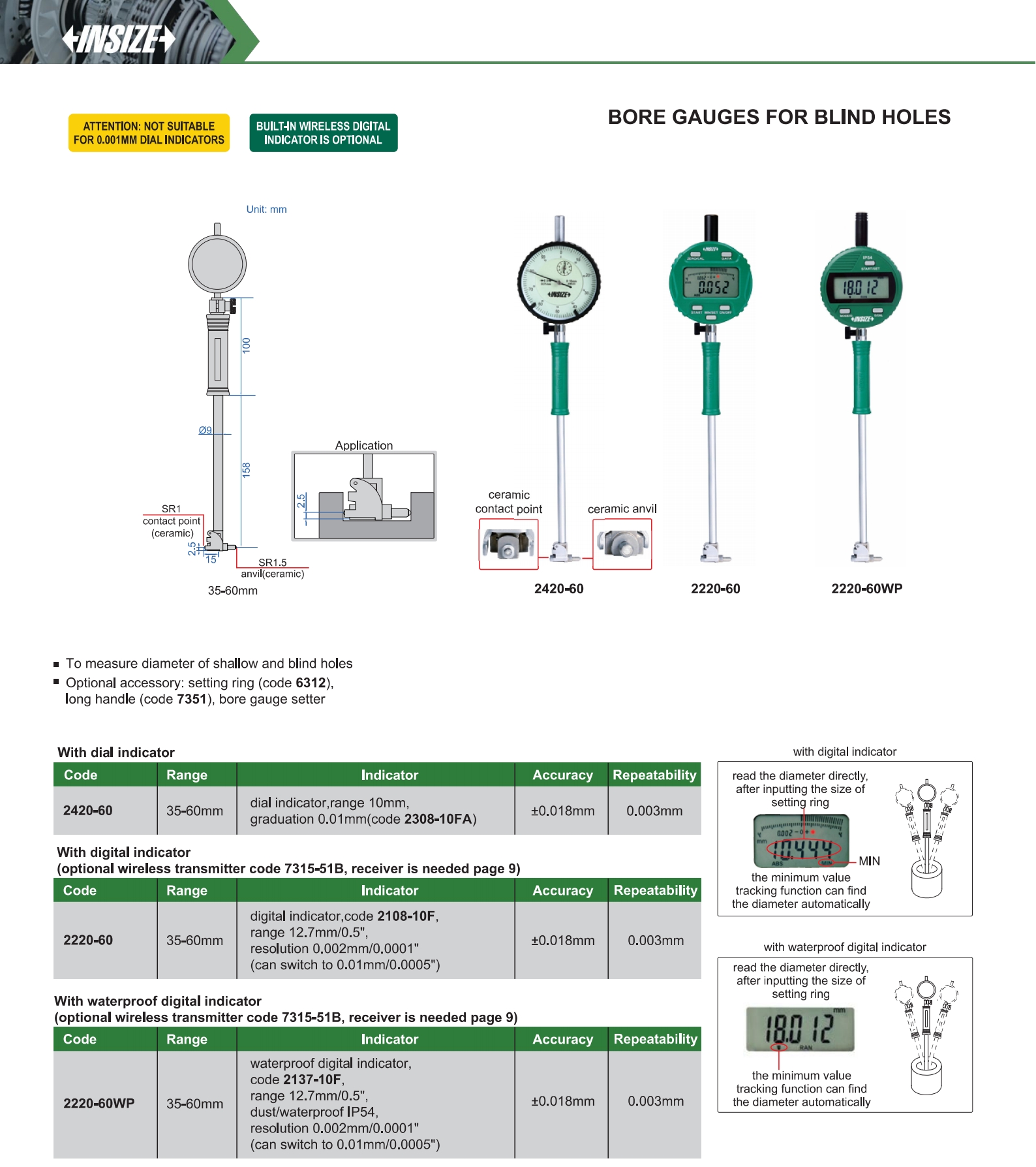 Bore Gauges For Blind Holes