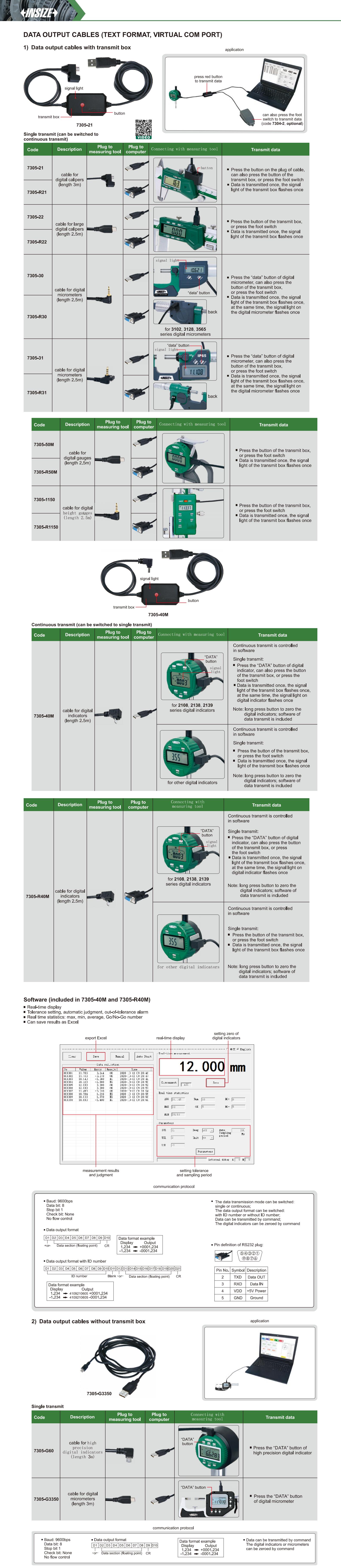 Data Output Cables (Text Format, Virtual Com Port)